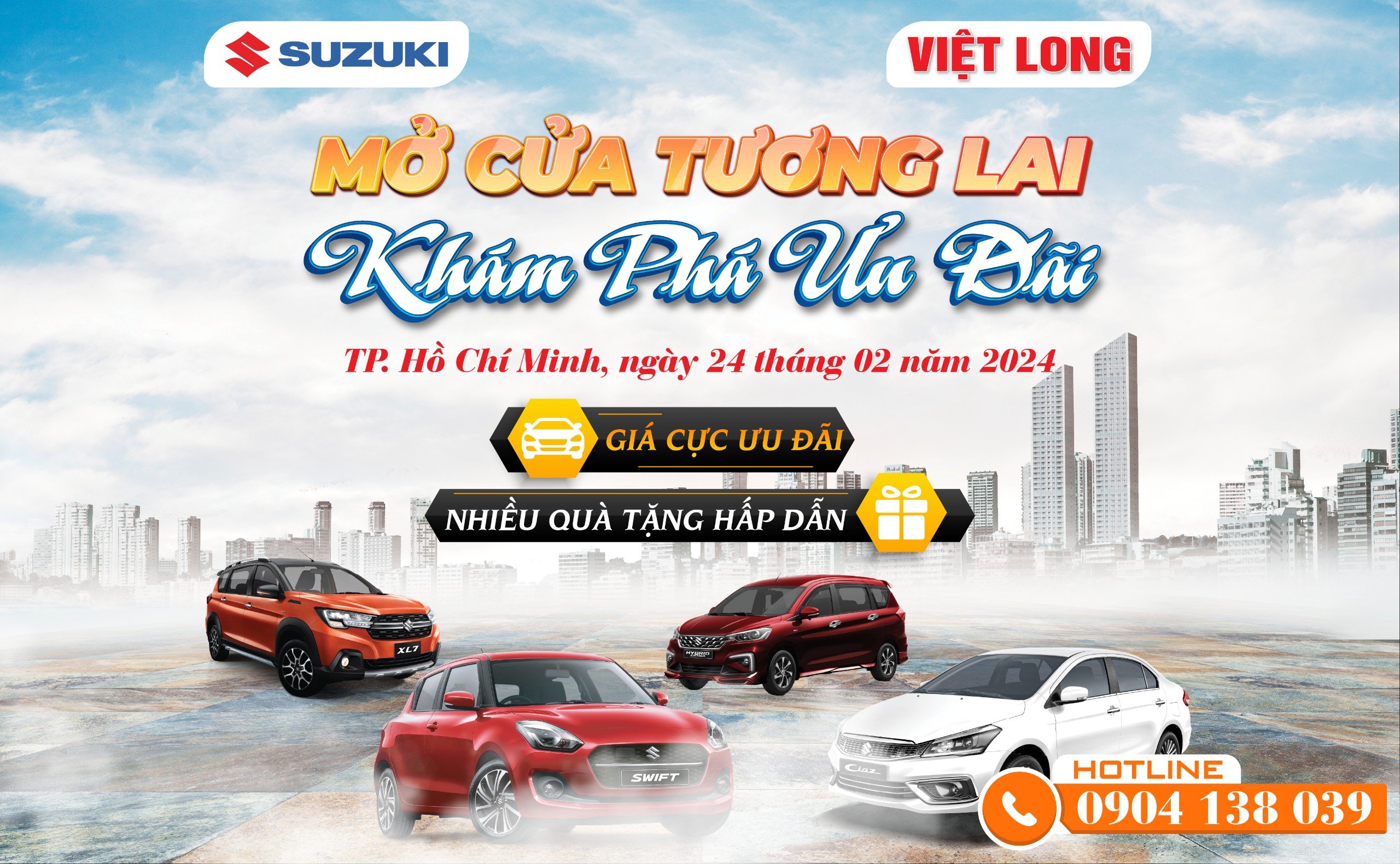 👉🏻 Kính mời Quý khách hàng tham dự sự kiện: “Mở cửa tương lai, khám phá ưu đãi” để có cơ hội lái thử & trải nghiệm các dòng xe Suzuki miễn phí cùng với các quà tặng, ưu đãi hấp dẫn khi mua xe mới tại Suzuki Việt Long trong ngày diễn ra kiện